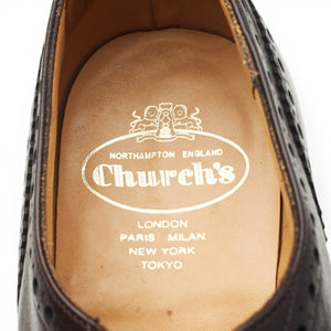 Church's 'Brisbane' oxford wingtip brogues in 'Mahogany' dark brown grain calf. In excellent used condition, showing minor signs off wear.
