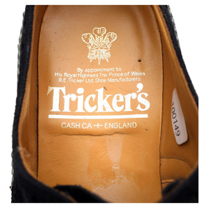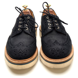 Tricker's 'M7292' derby brogues in navy blue suede and blue calf. In excellent used condition, showing moderate signs of wear.