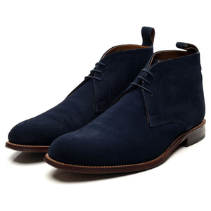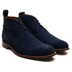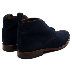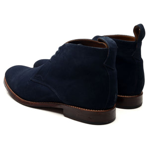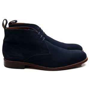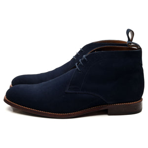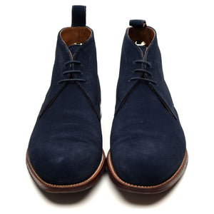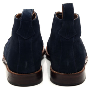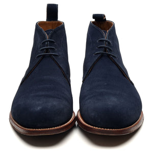 Grenson's 'Marcus' chukka boots in navy blue suede. In excellent used condition, showing minor signs of wear.