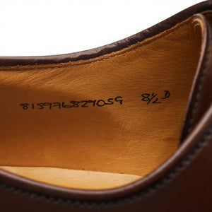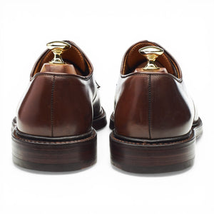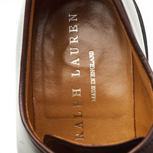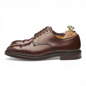 Crockett & Jones manufactured for Ralph Laurenplain toe derby in Marlow brown shell cordovan leather. In excellent used condition, showing minor signs of wear.