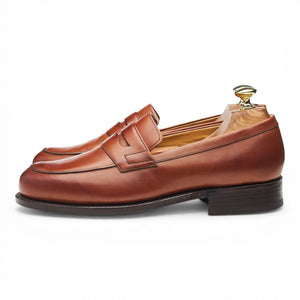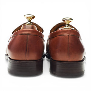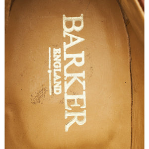 Barker split toe penny loafer in tan brown calf. In excellent used condition, showing minor signs of wear.