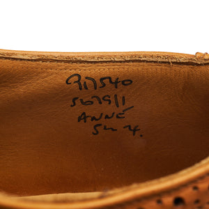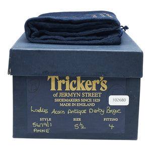 Tricker's 'Anne' derby brogue in Acorn Antique tan brown calf. In excellent used condition, showing minor signs of wear.